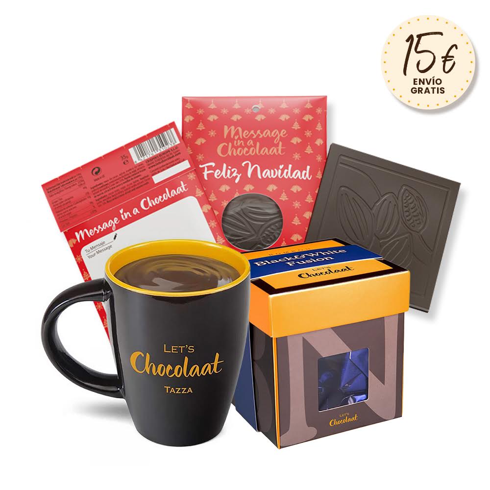 - Special Christmas gift pack (15€). Offers a Let's Chocolaat ceramic mug, a chocolate bar and a box of Black&White praline chocolates.