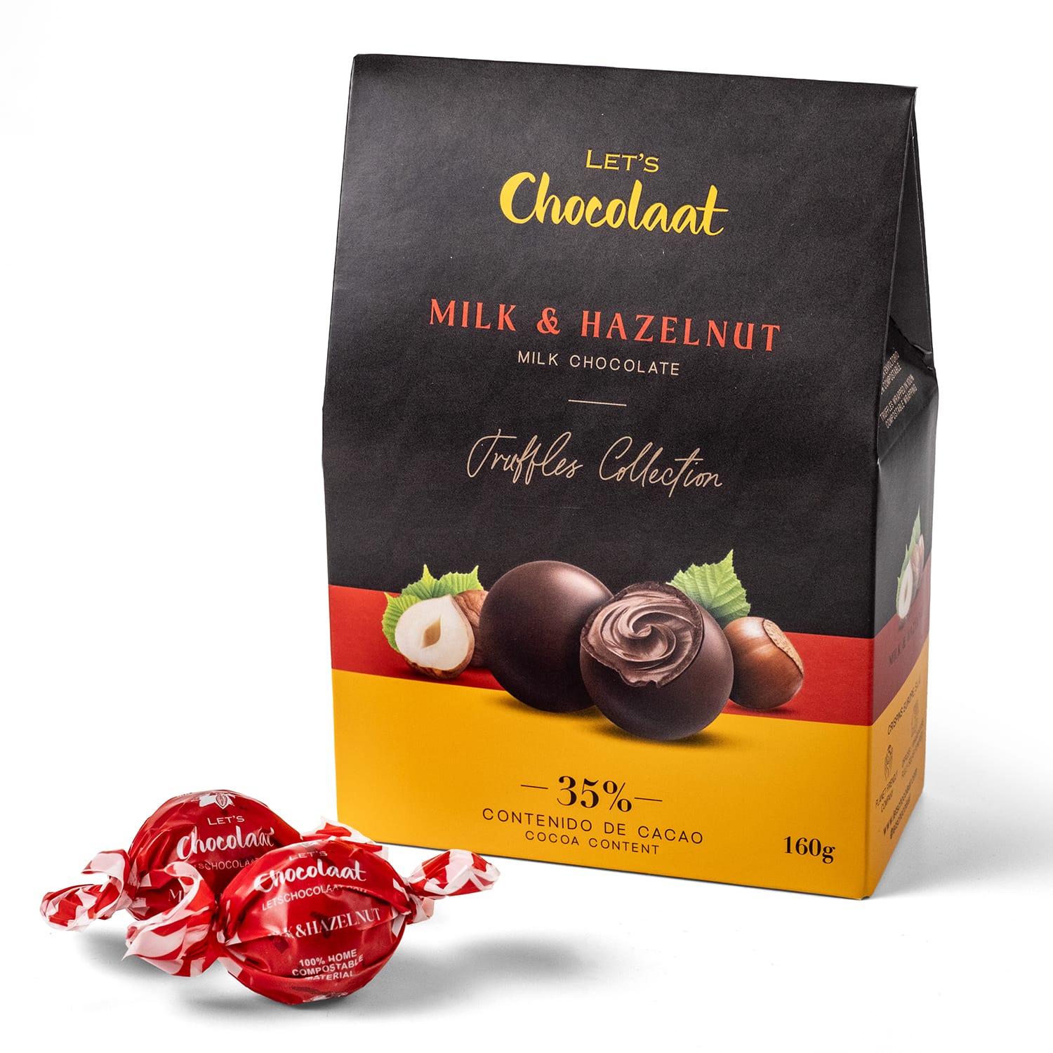 Milk chocolate truffles filled with hazelnut cream and crunchy cookies