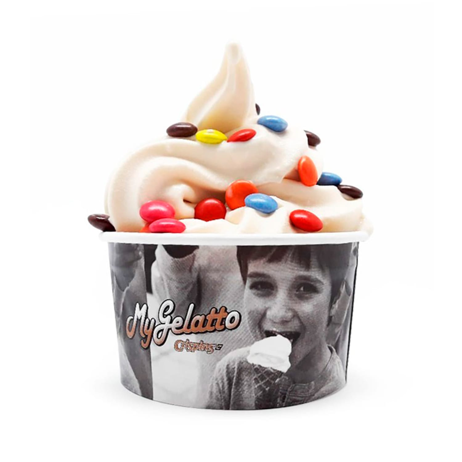 Topping dispenser jar with coloured chocolate sprinkles. Enhances the flavour and presentation of soft ice cream. Quantity: 800 grams.
