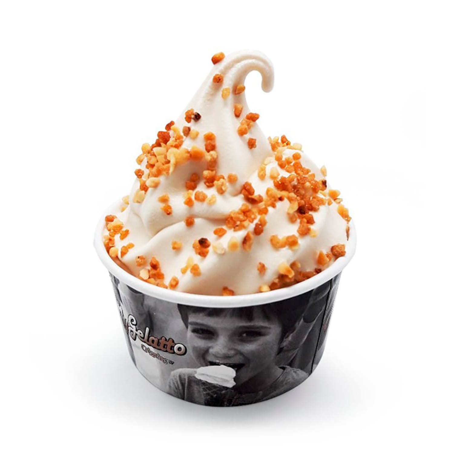 Topping dispenser jar of crunchy chopped hazelnuts.